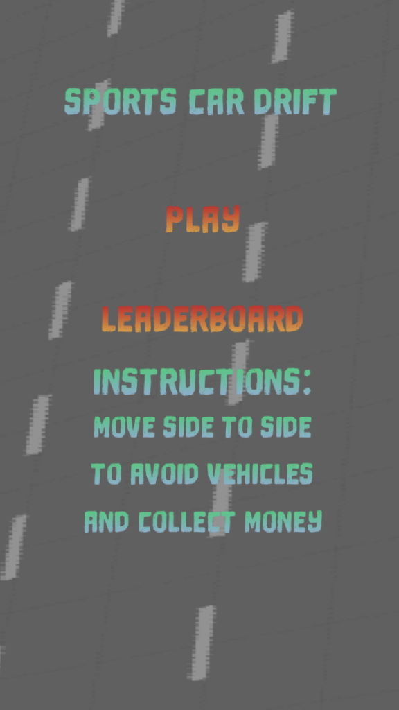 As you are speeding you have a score based on total distance travelled. How far can you go? The speed of your sportscar increases over distance. Collecting coins also gives you points.
